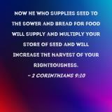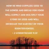 Now He who supplies seed to the sower and bread for food will supply and multiply your store of seed and will increase the harvest of your righteousness.