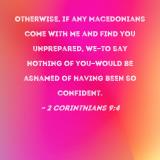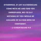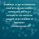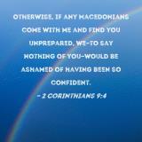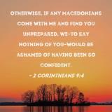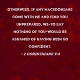 Otherwise, if any Macedonians come with me and find you unprepared, we--to say nothing of you--would be ashamed of having been so confident.