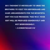 So I thought it necessary to urge the brothers to visit you beforehand and make arrangements for the bountiful gift you had promised. This way, your gift will be prepared generously and not begrudgingly.