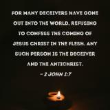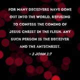 For many deceivers have gone out into the world, refusing to confess the coming of Jesus Christ in the flesh. Any such person is the deceiver and the antichrist.