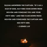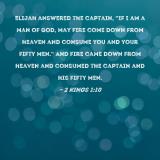 Elijah answered the captain, "If I am a man of God, may fire come down from heaven and consume you and your fifty men." And fire came down from heaven and consumed the captain and his fifty men.