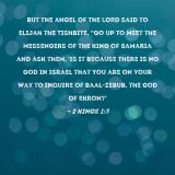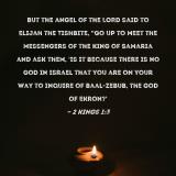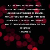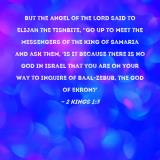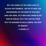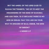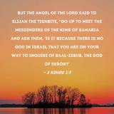 Pictures and Artwork But the angel of the LORD said to Elijah the Tishbite, "Go up to meet the messengers of the king of Samaria and ask them, 'Is it because there is no God in Israel that you are on your way to inquire of Baal-zebub, the god of Ekron?' |