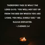 Therefore this is what the LORD says: 'You will not get up from the bed on which you are lying. You will surely die.'" So Elijah departed.