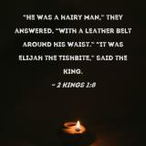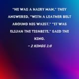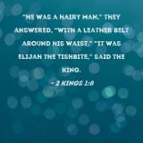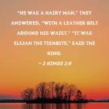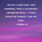 "He was a hairy man," they answered, "with a leather belt around his waist." "It was Elijah the Tishbite," said the king.