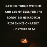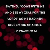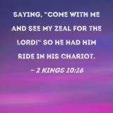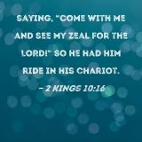 saying, "Come with me and see my zeal for the LORD!" So he had him ride in his chariot.