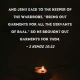 And Jehu said to the keeper of the wardrobe, "Bring out garments for all the servants of Baal." So he brought out garments for them.