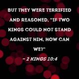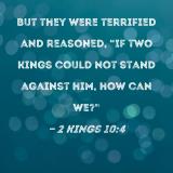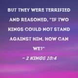 But they were terrified and reasoned, "If two kings could not stand against him, how can we?"