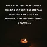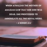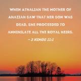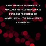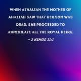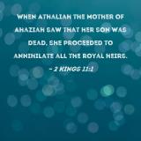 When Athaliah the mother of Ahaziah saw that her son was dead, she proceeded to annihilate all the royal heirs.