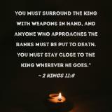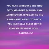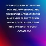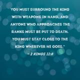 You must surround the king with weapons in hand, and anyone who approaches the ranks must be put to death. You must stay close to the king wherever he goes."