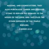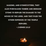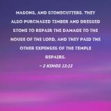 masons, and stonecutters. They also purchased timber and dressed stone to repair the damage to the house of the LORD, and they paid the other expenses of the temple repairs.