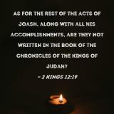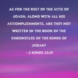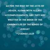 As for the rest of the acts of Joash, along with all his accomplishments, are they not written in the Book of the Chronicles of the Kings of Judah?