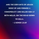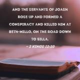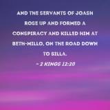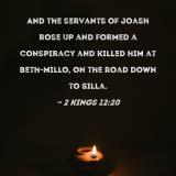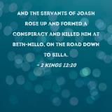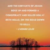 And the servants of Joash rose up and formed a conspiracy and killed him at Beth-millo, on the road down to Silla.