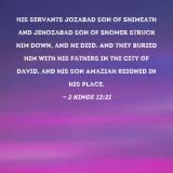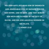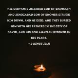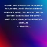 His servants Jozabad son of Shimeath and Jehozabad son of Shomer struck him down, and he died. And they buried him with his fathers in the City of David, and his son Amaziah reigned in his place.