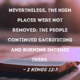 Nevertheless, the high places were not removed; the people continued sacrificing and burning incense there.