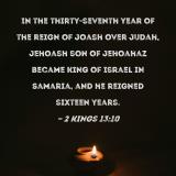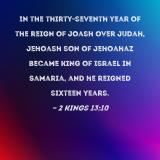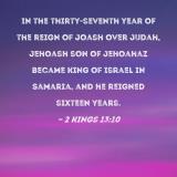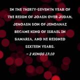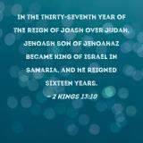 In the thirty-seventh year of the reign of Joash over Judah, Jehoash son of Jehoahaz became king of Israel in Samaria, and he reigned sixteen years.