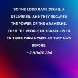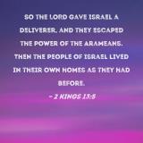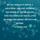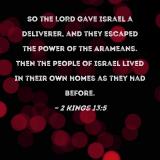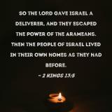 So the LORD gave Israel a deliverer, and they escaped the power of the Arameans. Then the people of Israel lived in their own homes as they had before.