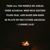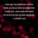 Then all the people of Judah took Azariah, who was sixteen years old, and made him king in place of his father Amaziah.