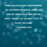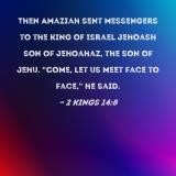 Then Amaziah sent messengers to the king of Israel Jehoash son of Jehoahaz, the son of Jehu. "Come, let us meet face to face," he said.