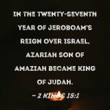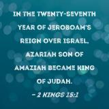 In the twenty-seventh year of Jeroboam's reign over Israel, Azariah son of Amaziah became king of Judah.