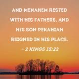 And Menahem rested with his fathers, and his son Pekahiah reigned in his place.
