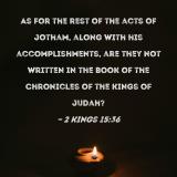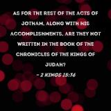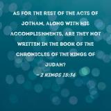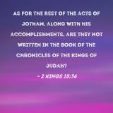 As for the rest of the acts of Jotham, along with his accomplishments, are they not written in the Book of the Chronicles of the Kings of Judah?
