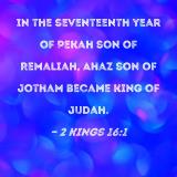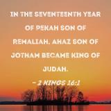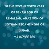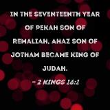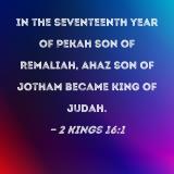 In the seventeenth year of Pekah son of Remaliah, Ahaz son of Jotham became king of Judah.