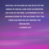 Instead, he walked in the ways of the kings of Israel and even sacrificed his son in the fire, according to the abominations of the nations that the LORD had driven out before the Israelites.