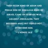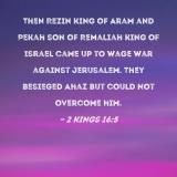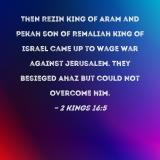 Then Rezin king of Aram and Pekah son of Remaliah king of Israel came up to wage war against Jerusalem. They besieged Ahaz but could not overcome him.