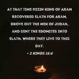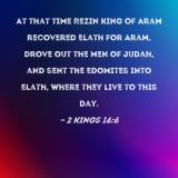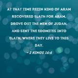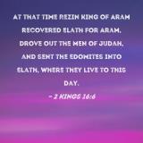 At that time Rezin king of Aram recovered Elath for Aram, drove out the men of Judah, and sent the Edomites into Elath, where they live to this day.