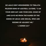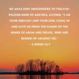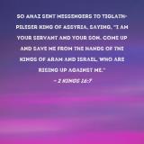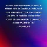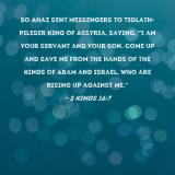 So Ahaz sent messengers to Tiglath-pileser king of Assyria, saying, "I am your servant and your son. Come up and save me from the hands of the kings of Aram and Israel, who are rising up against me."