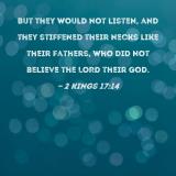 But they would not listen, and they stiffened their necks like their fathers, who did not believe the LORD their God.