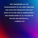 They abandoned all the commandments of the LORD their God and made for themselves two cast idols of calves and an Asherah pole. They bowed down to all the host of heaven and served Baal.