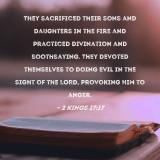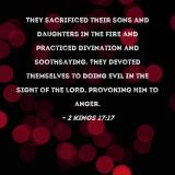 They sacrificed their sons and daughters in the fire and practiced divination and soothsaying. They devoted themselves to doing evil in the sight of the LORD, provoking Him to anger.