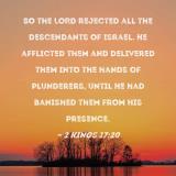 So the LORD rejected all the descendants of Israel. He afflicted them and delivered them into the hands of plunderers, until He had banished them from His presence.