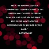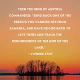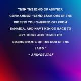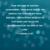 Then the king of Assyria commanded: "Send back one of the priests you carried off from Samaria, and have him go back to live there and teach the requirements of the God of the land."