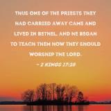Thus one of the priests they had carried away came and lived in Bethel, and he began to teach them how they should worship the LORD.