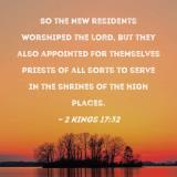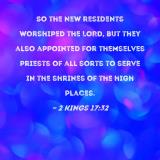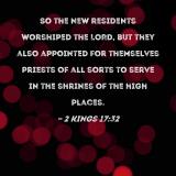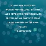 So the new residents worshiped the LORD, but they also appointed for themselves priests of all sorts to serve in the shrines of the high places.