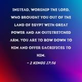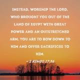 Instead, worship the LORD, who brought you out of the land of Egypt with great power and an outstretched arm. You are to bow down to Him and offer sacrifices to Him.
