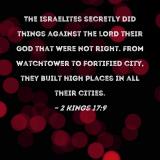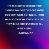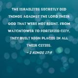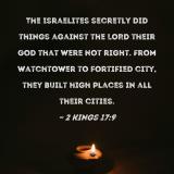 The Israelites secretly did things against the LORD their God that were not right. From watchtower to fortified city, they built high places in all their cities.