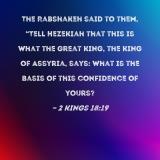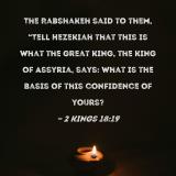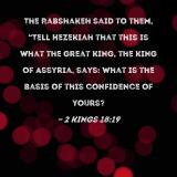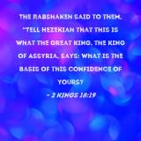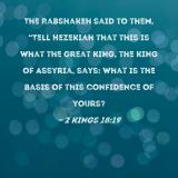 The Rabshakeh said to them, "Tell Hezekiah that this is what the great king, the king of Assyria, says: What is the basis of this confidence of yours?