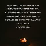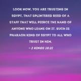 Look now, you are trusting in Egypt, that splintered reed of a staff that will pierce the hand of anyone who leans on it. Such is Pharaoh king of Egypt to all who trust in him.