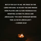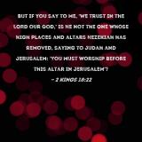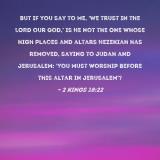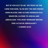 But if you say to me, 'We trust in the LORD our God,' is He not the One whose high places and altars Hezekiah has removed, saying to Judah and Jerusalem: 'You must worship before this altar in Jerusalem'?