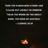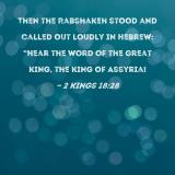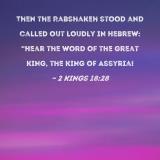 Then the Rabshakeh stood and called out loudly in Hebrew: "Hear the word of the great king, the king of Assyria!