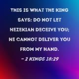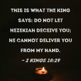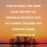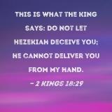This is what the king says: Do not let Hezekiah deceive you; he cannot deliver you from my hand.