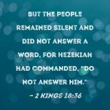 But the people remained silent and did not answer a word, for Hezekiah had commanded, "Do not answer him."