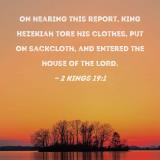 On hearing this report, King Hezekiah tore his clothes, put on sackcloth, and entered the house of the LORD.