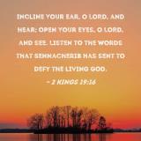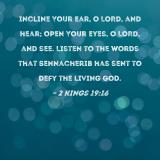 Incline Your ear, O LORD, and hear; open Your eyes, O LORD, and see. Listen to the words that Sennacherib has sent to defy the living God.