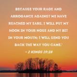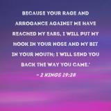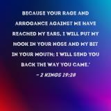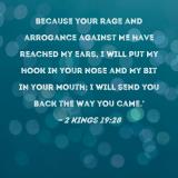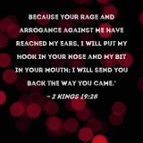 Because your rage and arrogance against Me have reached My ears, I will put My hook in your nose and My bit in your mouth; I will send you back the way you came.'
