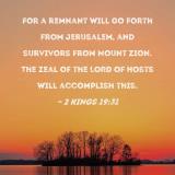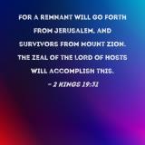 For a remnant will go forth from Jerusalem, and survivors from Mount Zion. The zeal of the LORD of Hosts will accomplish this.