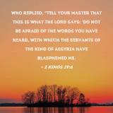 who replied, "Tell your master that this is what the LORD says: 'Do not be afraid of the words you have heard, with which the servants of the king of Assyria have blasphemed Me.